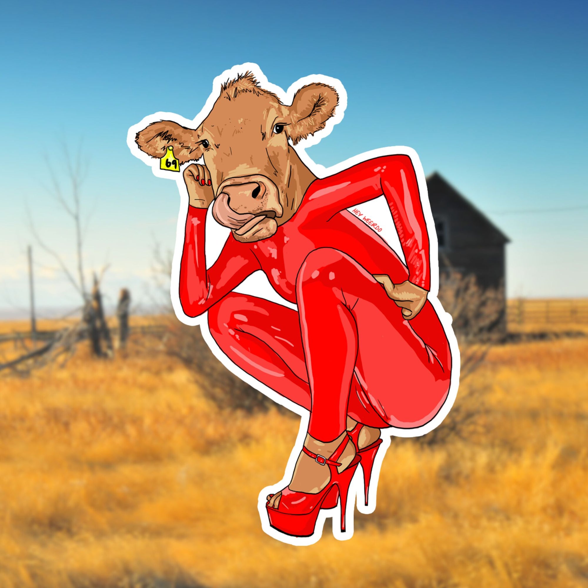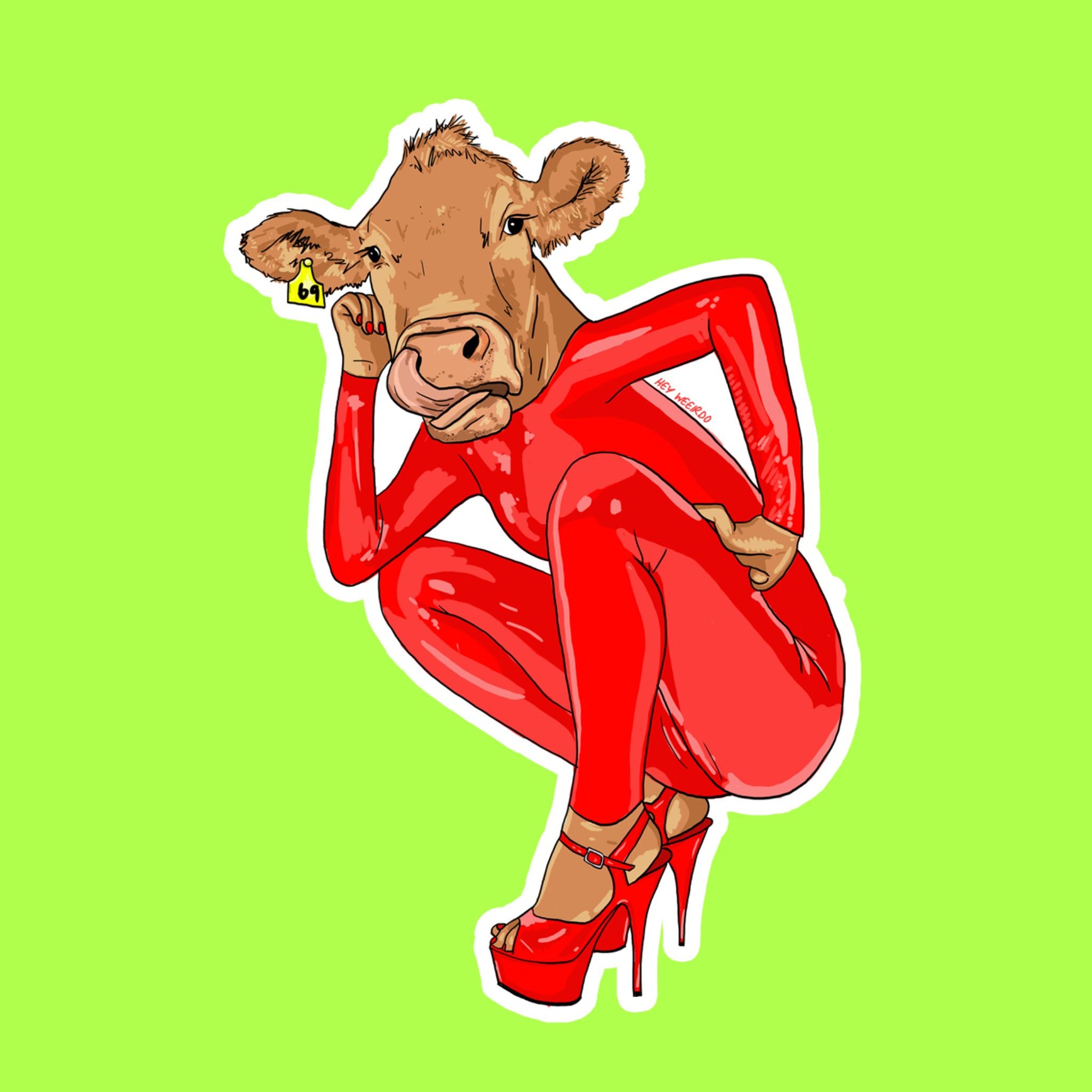 RED LATEX COW - sticker